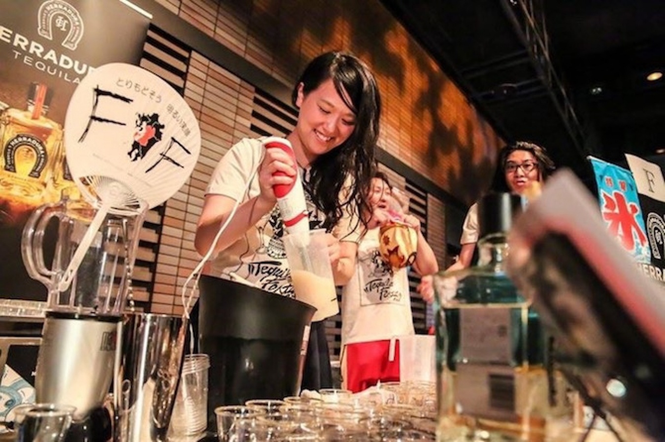 2016年9月に博多で開催された「テキーラフェスタ」。炭酸氷を使ったオリジナルカクテルを振る舞う、熊本「BAR BLUE」の豊川さん。