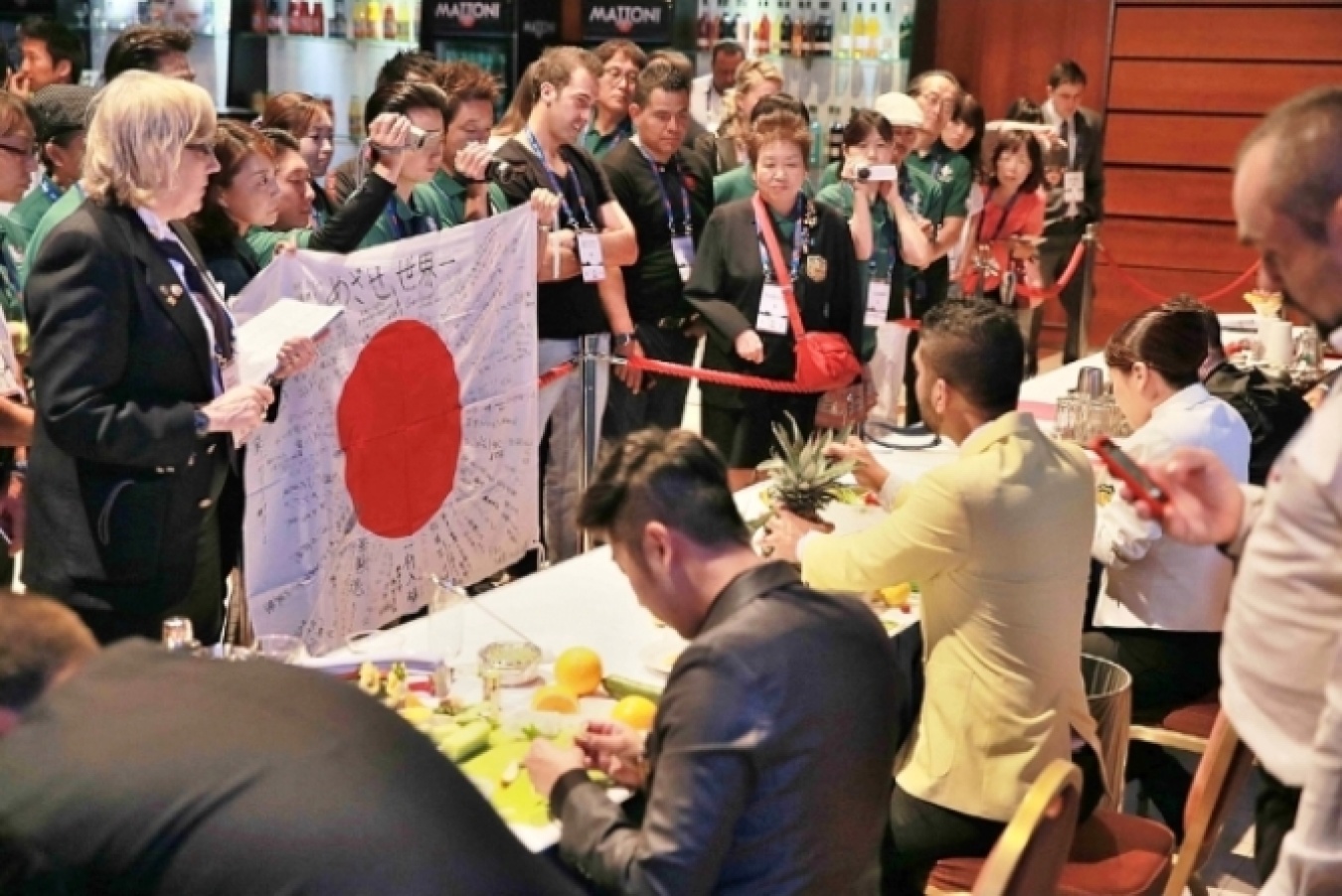 高橋さんのフルーツカッティング見たさに、大勢のギャラリーが集まった。©一般社団法人 日本バーテンダー協会