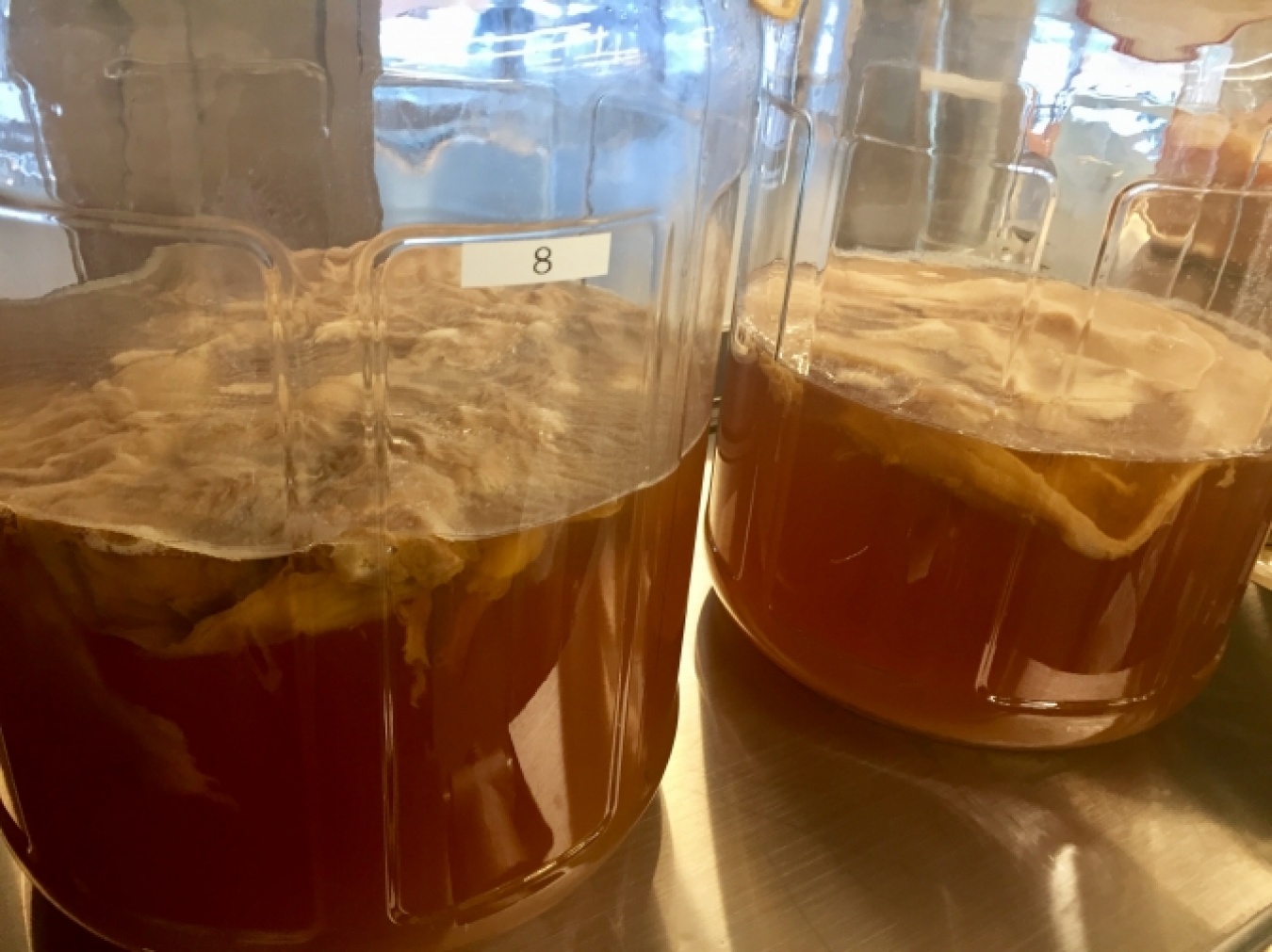 「うちのコンブチャは、紅茶と緑茶をミックスして造っています。