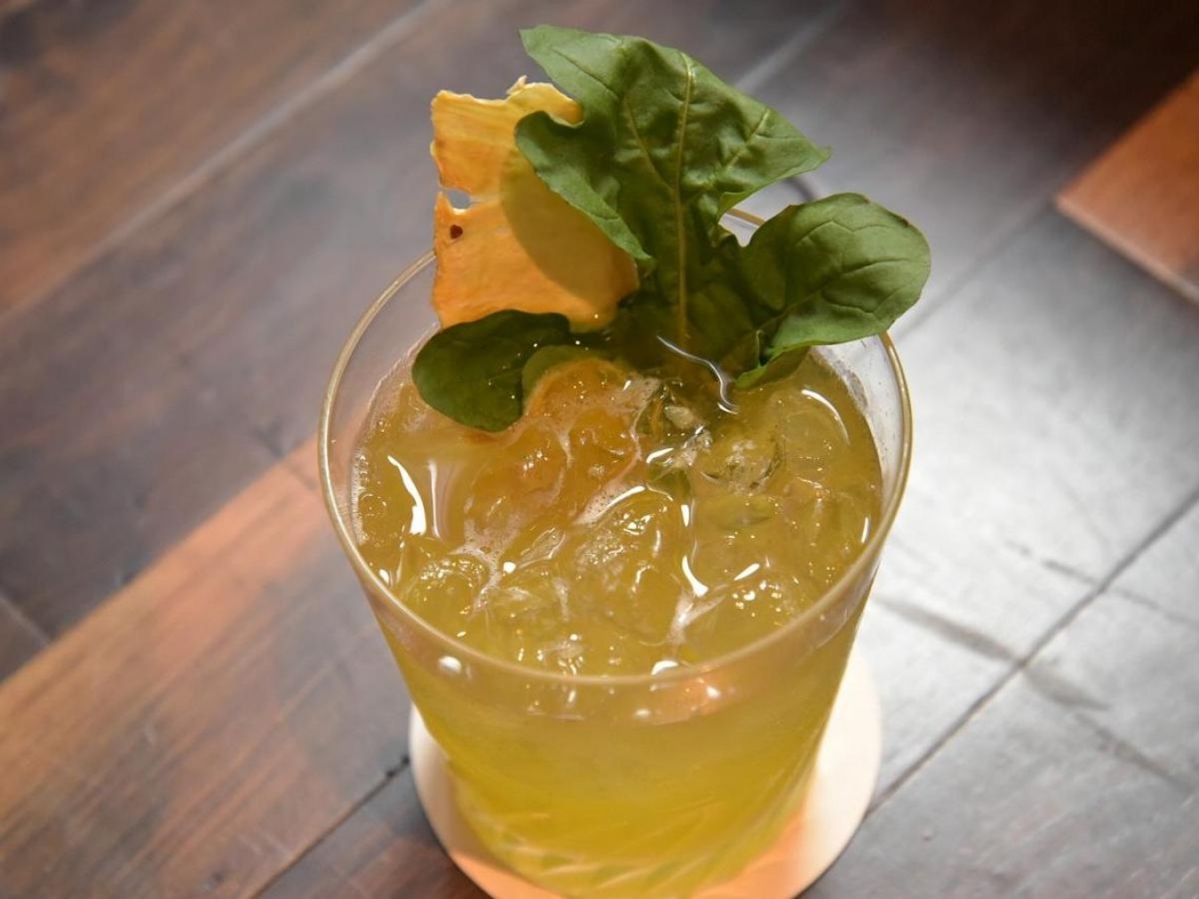 「CRISTA」で楽しめるカクテル、「PINEAPPLE ARUGULA MAITAI」¥1,300。フレッシュなパイナップルとルッコラをマイタイに仕立てた。
