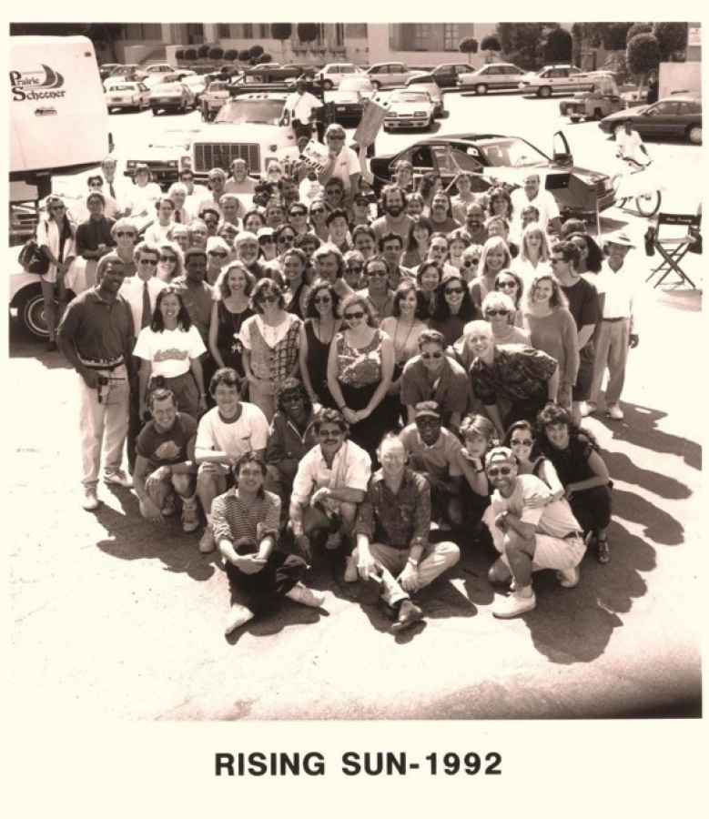 映画「ライジング・サン」のキャスト&スタッフと。主演のショーン・コネリーや共演のウェズリー・スナイプスの姿も。