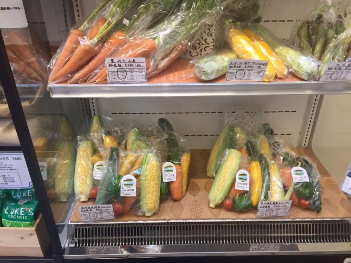 大泉工場NISHIAZABUでは、コールドプレスジュースに用いられる無農薬・有機栽培の野菜も販売している。