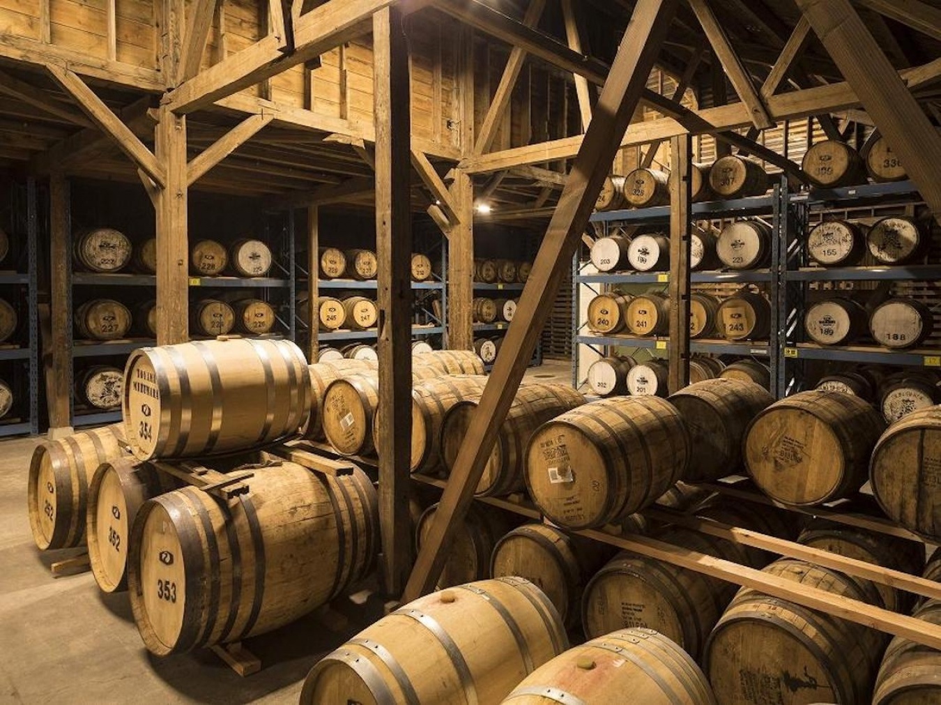 熟成樽はバーボン、シェリー、ワイン、富山県南砺市のミズナラを使ったミズナラ樽などさまざまな種類を使っている。今後は地元で地場木材を使った樽づくりにも取り組んでいる。