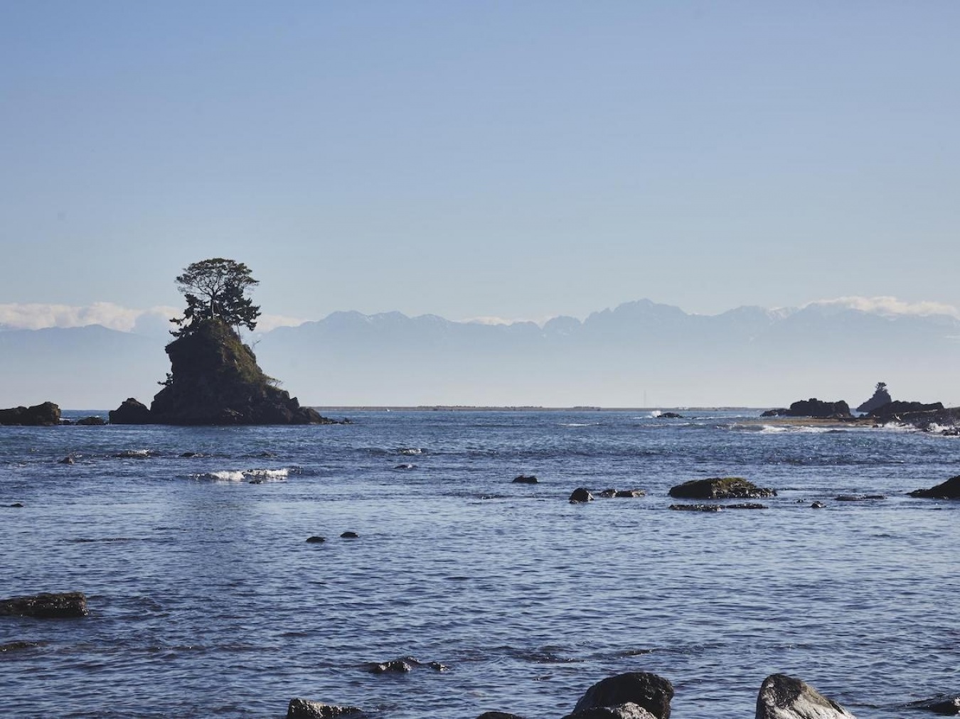 富山湾越しに望む立山連峰。山と水、どちにも恵まれたこの土地では、ものづくりの文化が根付いている。(写真提供:(一社)富山県西部観光社 水と匠)