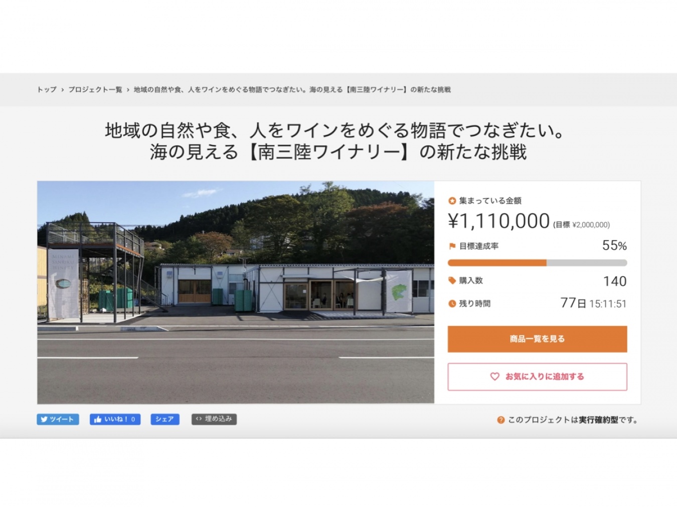 注目を集めるプロジェクトの一つ、南三陸ワイナリーの試み。(支援の内容は4月14日現在のもの。)