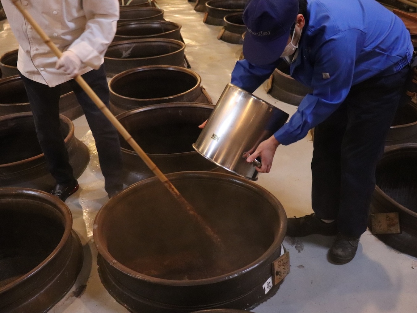 パッケージは思いっきりモダンなのに、製造の現場には昔ながらの焼酎蔵の趣が漂う。このギャップが日本のモノづくりらしくて素敵。
