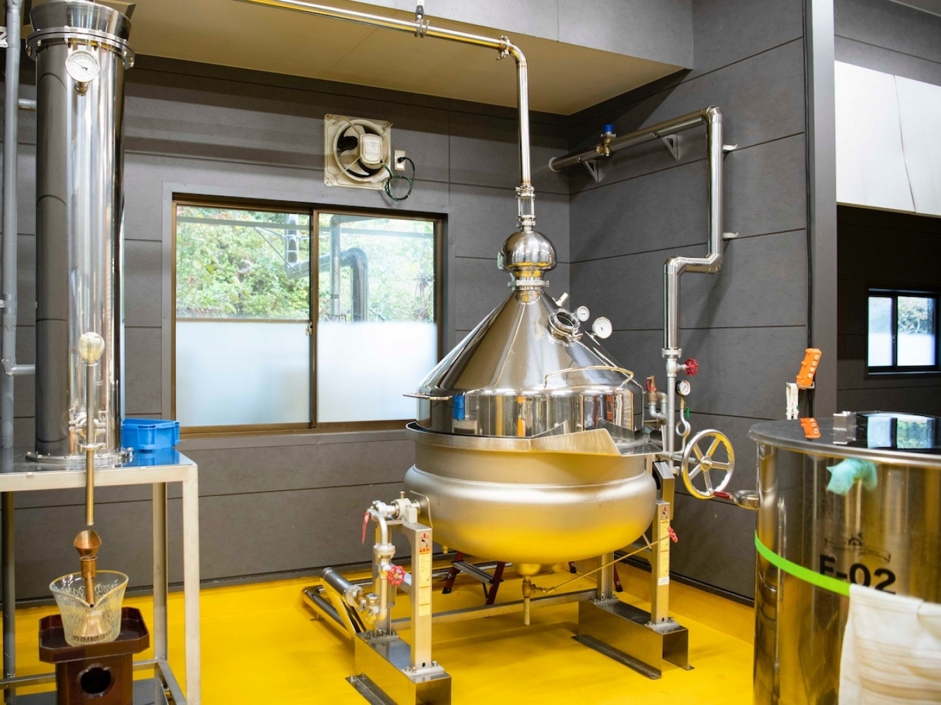 一方、700坪という敷地にある蒸溜所では、増築した蒸留棟が完成したばかり。蒸溜棟にあるのは2機の蒸留器だ。