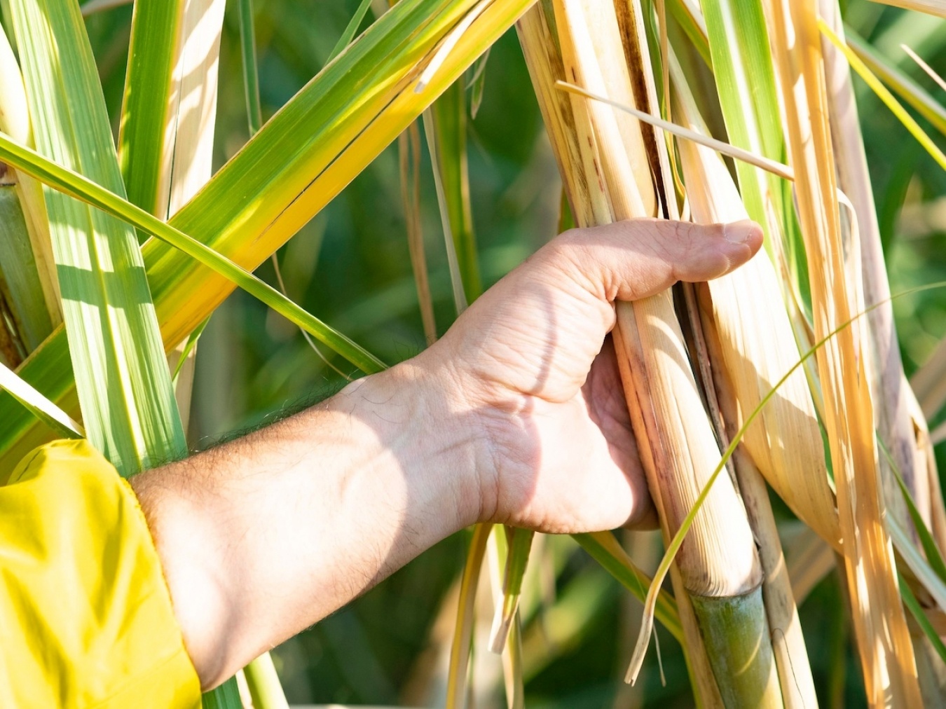蒸溜所から車で10分あまりの距離に点在する2ヘクタールの畑では、3m超えに成長したサトウキビが揺れていた。