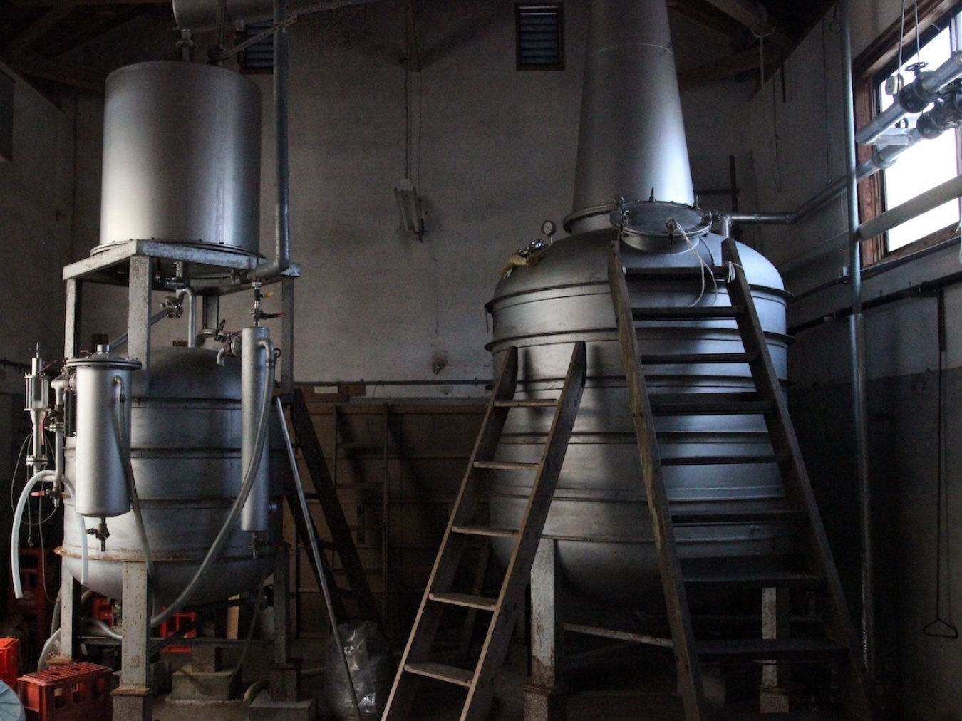 塩田さんに案内していただいた「マキノ蒸溜所」の主役は、年代物のステンレス製蒸留機。
