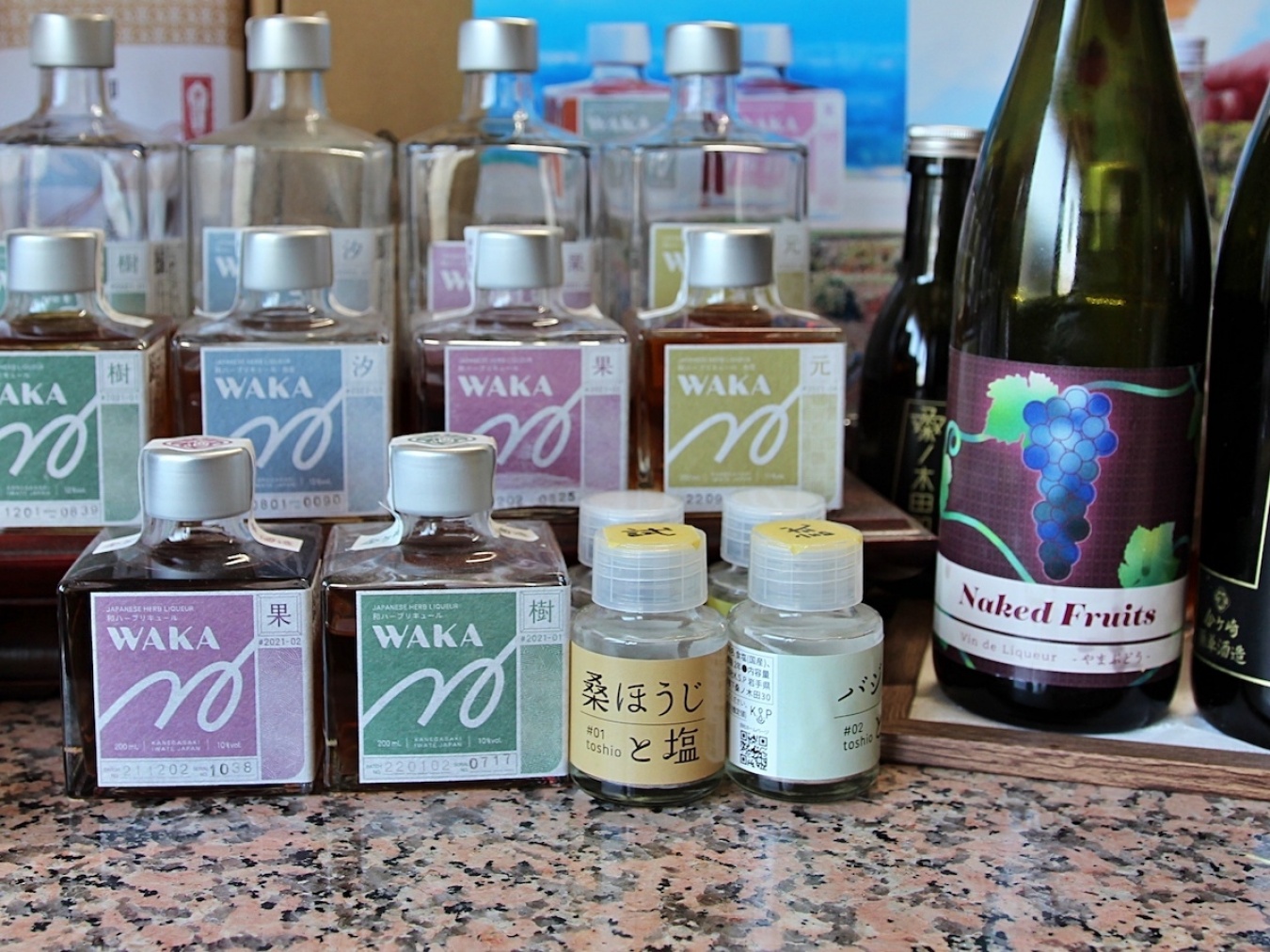 “テロワール”を表現している「金ケ崎薬草酒造」のリキュールは現在15ラインナップ。さらに月に1〜2本のOEMを請け負っている。