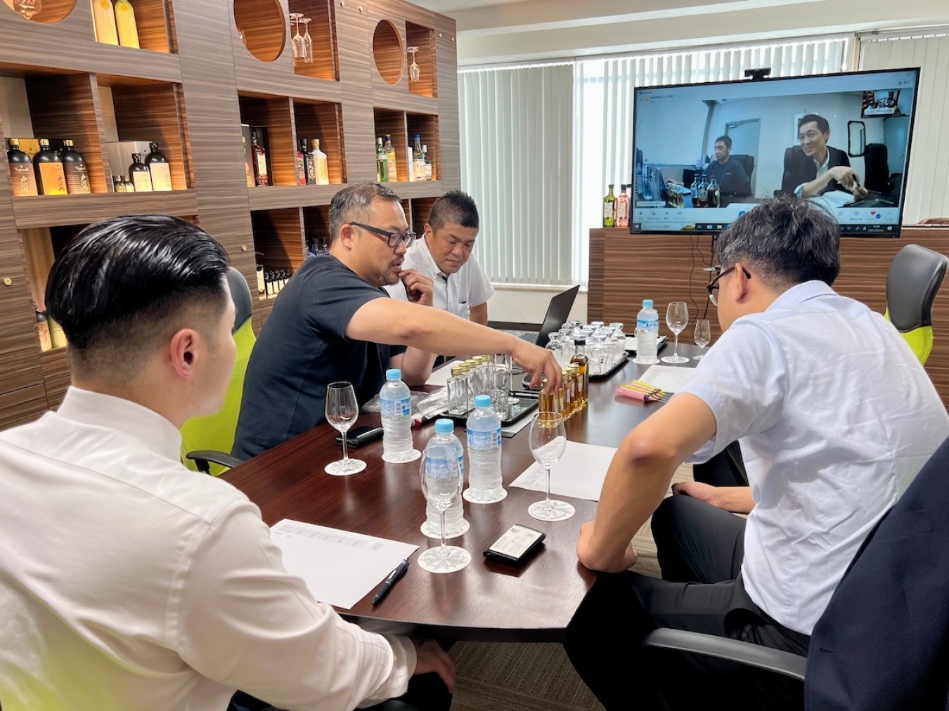 SAKURAO蒸留所における『龍流』のブレンド風景。10パターンほどを試作してその中から3種に絞り、「お酒の美術館」の店長会議での投票を経てレシピが決定する。