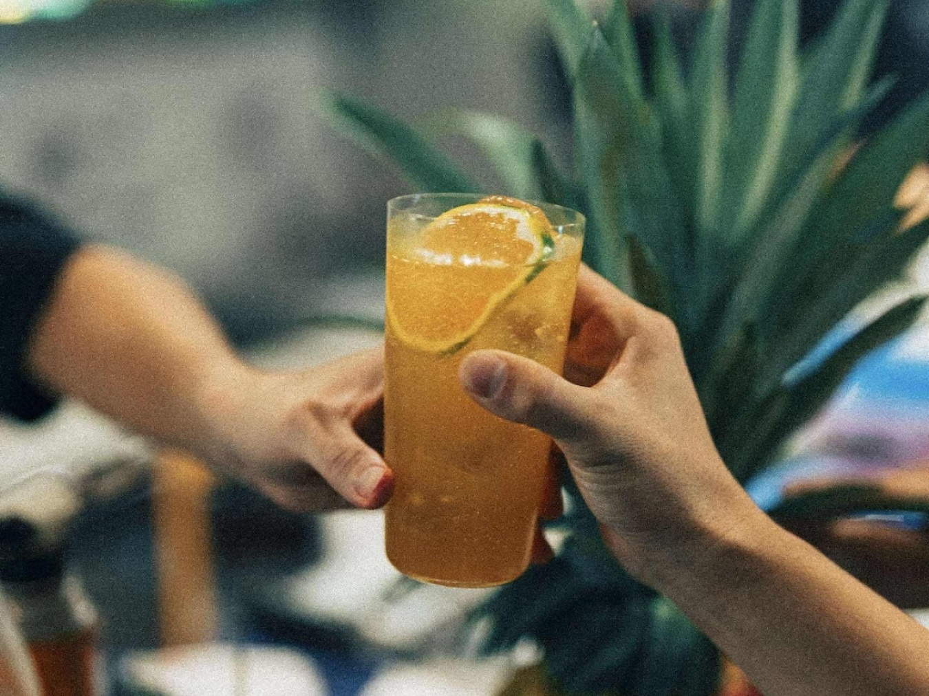 奄美「UNION」で開催したローンチイベントで提供したカクテル「TKコリンズ」。「Coffee」に富田酒造場のタンカンリキュールを合わせ、ソーダでアップ。隠し味に島みかんを効かせた。