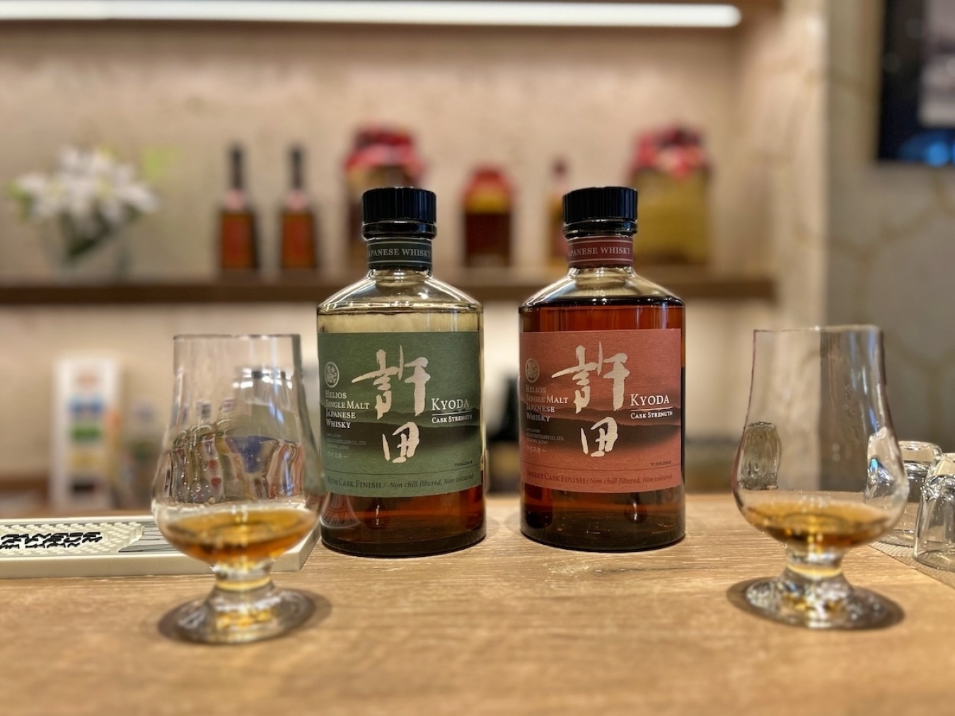 シングルモルトジャパニーズウイスキー 「許田 ラムカスクフィニッシュ」(左)と「許田 シェリーカスクフィニッシュ」(右)ともに¥16,500。