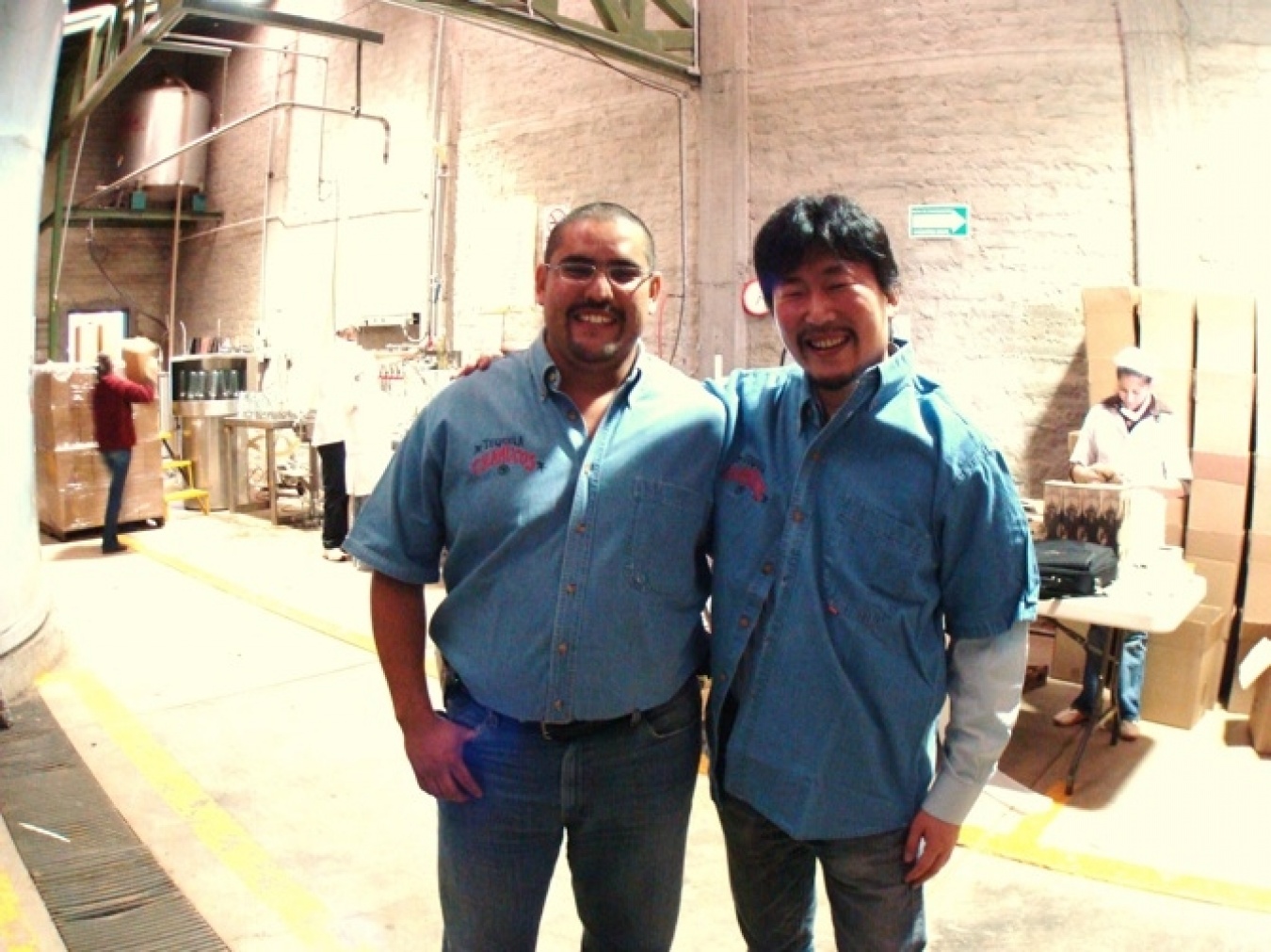 テキーラ・チャムーコスの蒸留所で、スタッフと。