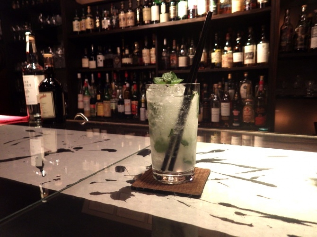 池袋「itten bar」の関さんが考案した「真冬のモヒート」¥1,500。「ナインリーヴズの風味を殺さないよう、ミントの香りはあえて控え目に。レモングラス、レモンバーム、ペパーミントと3種のハーブを使いました」と関さん。