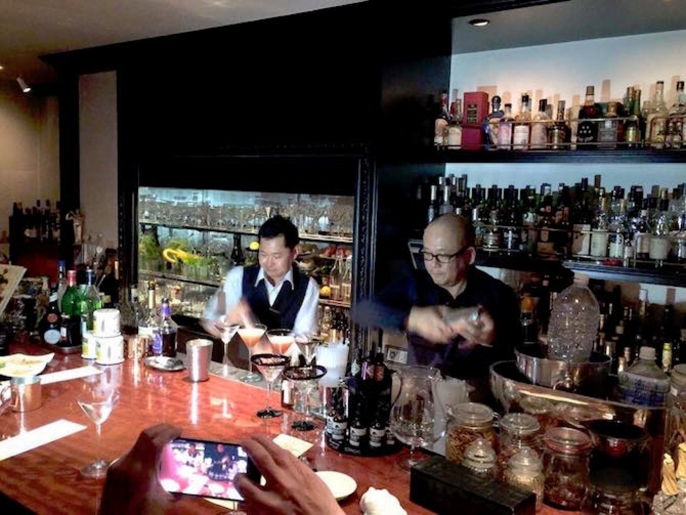 セミナーの後はゲスト・バーテンダーとしてさまざまなバーのカウンターに立つ。