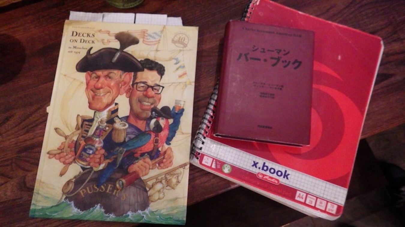 今回のジャパンツアーに持ってきたもの。左は昨年上梓された「パッサーズ ニューヨーク バー ブック」。