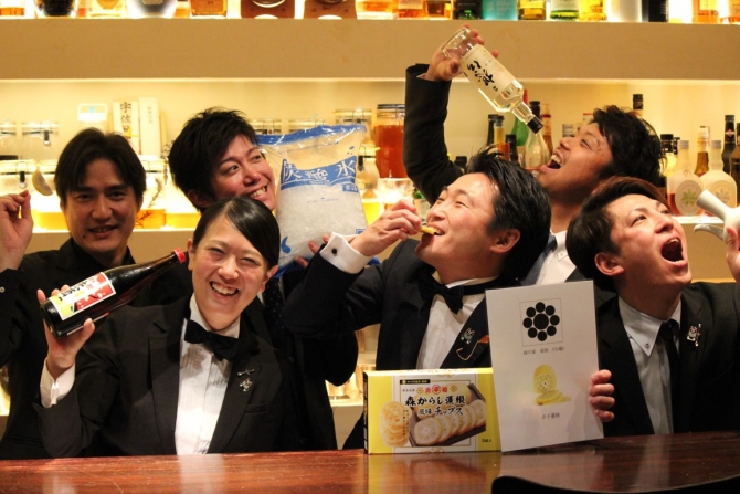 熊本出身のバーテンダー3名が考える、からし蓮根とカクテルのペアリング。焼酎、牛乳、赤酒、梅酒、そして話題の炭酸氷といった素材に、熊本愛を感じました。