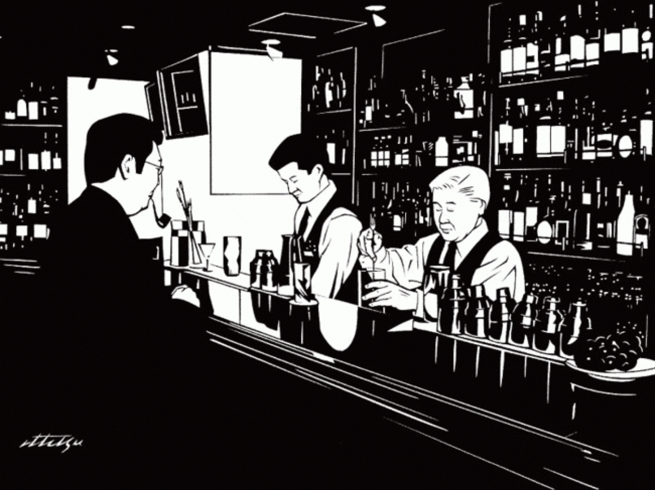 バーの魅力を切り絵というモノクロームで表現した切り絵作家、故成田一徹さん。