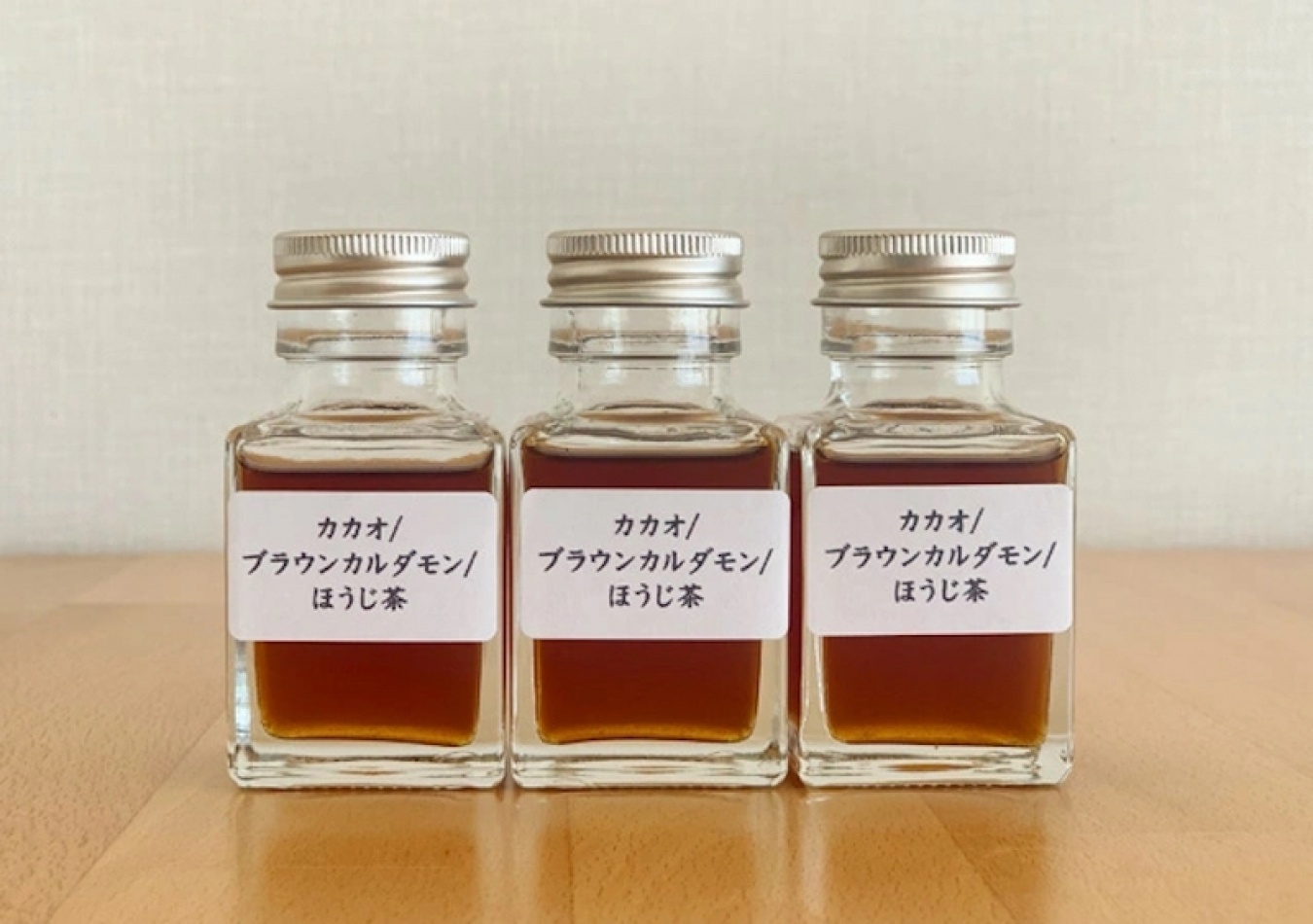 ちなみにカカオはウガンダ産、ほうじ茶は三重県大台町産、ブラウンカルダモンはインド産を使用し、それぞれ浸漬製法で成分を抽出しています。