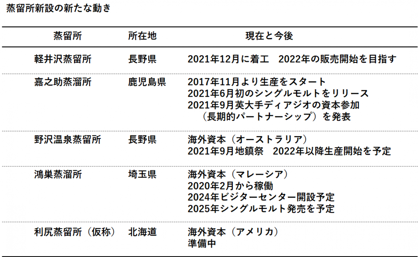 近年の蒸留所新設の背景の新たな動きとしてキーワードになりそうなのが「大手資本」、「海外資本」だ。